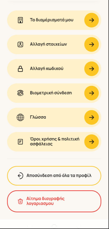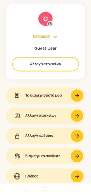 Πατώντας το εικονίδιο προφίλ στην αρχική οθόνη, μεταφέρεσαι στο Προφίλ Χρήστη. Εδώ μπορείς να: