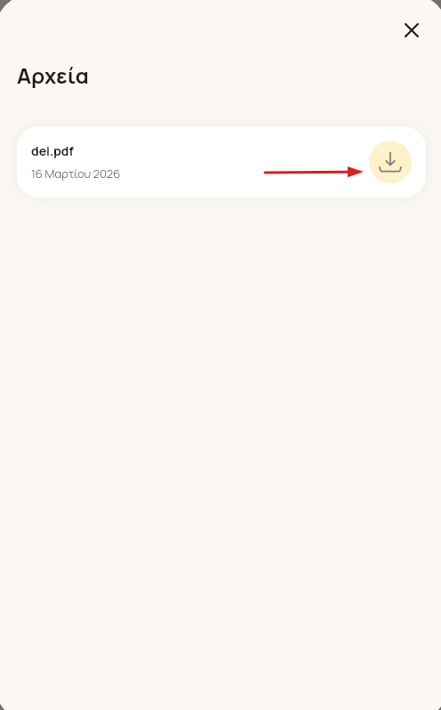 Στο παράθυρο που αναδύεται επιλέγεις το αρχείο , πατώντας το βελάκι στα δεξιά. Το αρχείο κατεβαίνει και αποθηκεύεται στον υπολογιστή ή στο κινητό σου.
